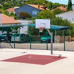Goście zatrzymujący się w obiekcie noclegowym mogą korzystać z udogodnień do samodzielnego przygotowywania posiłków, takich jak kuchnia oraz jadalnia na świeżym powietrzu. Dania kuchni europejskiej serwowane są w restauracji Konoba Denis, która leży w odległości 6-minutowego spaceru. Przystanek autobusowy Jezera jest w około 800 m.